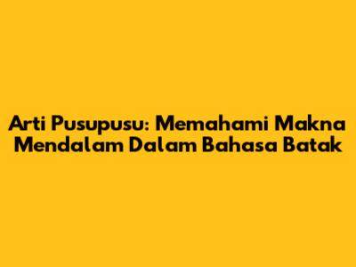 Arti Pusupusu: Memahami Makna Mendalam Dalam Bahasa Batak