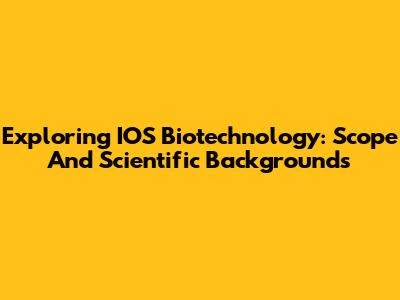 Exploring IOS Biotechnology: Scope And Scientific Backgrounds