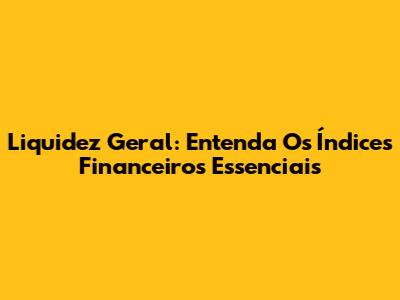 Liquidez Geral: Entenda Os Índices Financeiros Essenciais