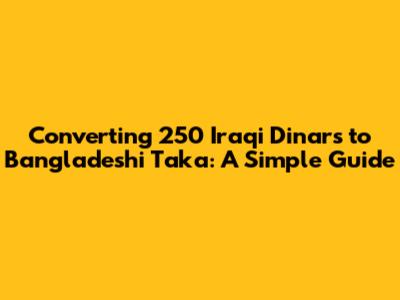 Hey guys! So, you're looking to figure out how much 250 Iraqi dinars (IQD) is worth in Bangladeshi taka (BDT), huh? Well, you've come to the right place! Converting currencies can sometimes feel like solving a complex puzzle, but don't worry, I'm here to break it down for you in a super easy-to-understand way. We'll explore the current exchange rates, how to do the calculations, and even throw in some tips to make sure you get the best deal when you exchange your money. Ready to dive in?