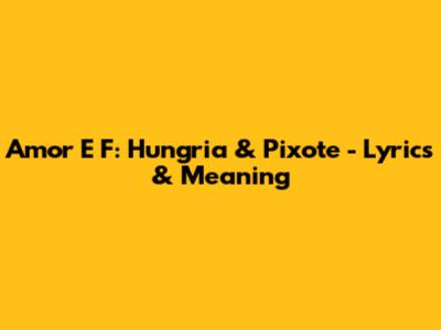 Amor E F: Hungria & Pixote - Lyrics & Meaning