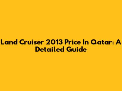 Land Cruiser 2013 Price In Qatar: A Detailed Guide