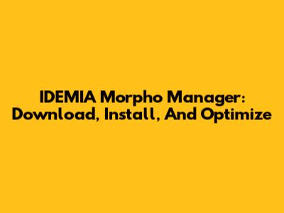 IDEMIA Morpho Manager: Download, Install, And Optimize