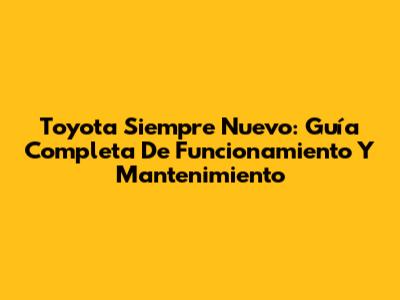 Toyota Siempre Nuevo: Guía Completa De Funcionamiento Y Mantenimiento