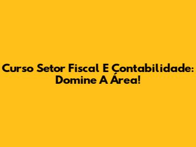 Curso Setor Fiscal E Contabilidade: Domine A Área!