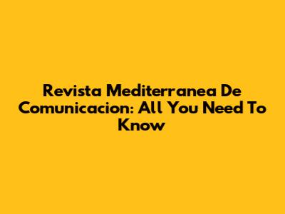 Revista Mediterranea De Comunicacion: All You Need To Know